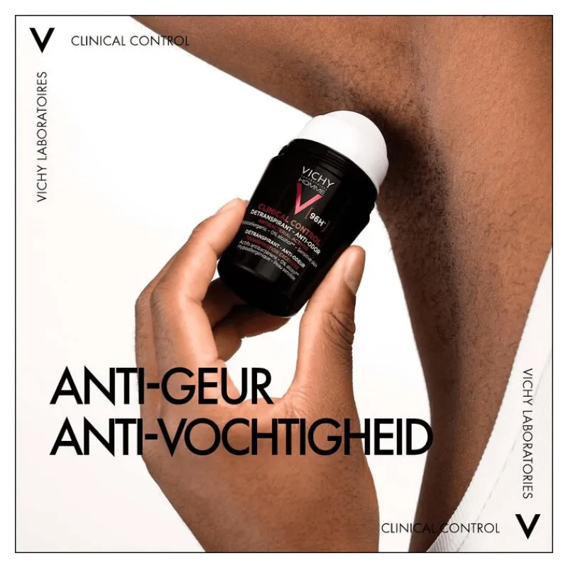 De Clinical Control 96U Deodorant van Vichy Homme is een roll-on deodorant met klinisch bewezen effectiviteit tegen excessief zweten. De antibacteriële en anti-geur werking is continu actief, zelfs in kleine doses, door de bacteriën die verantwoordelijk zijn voor onaangename zweetgeurtjes te elimineren.