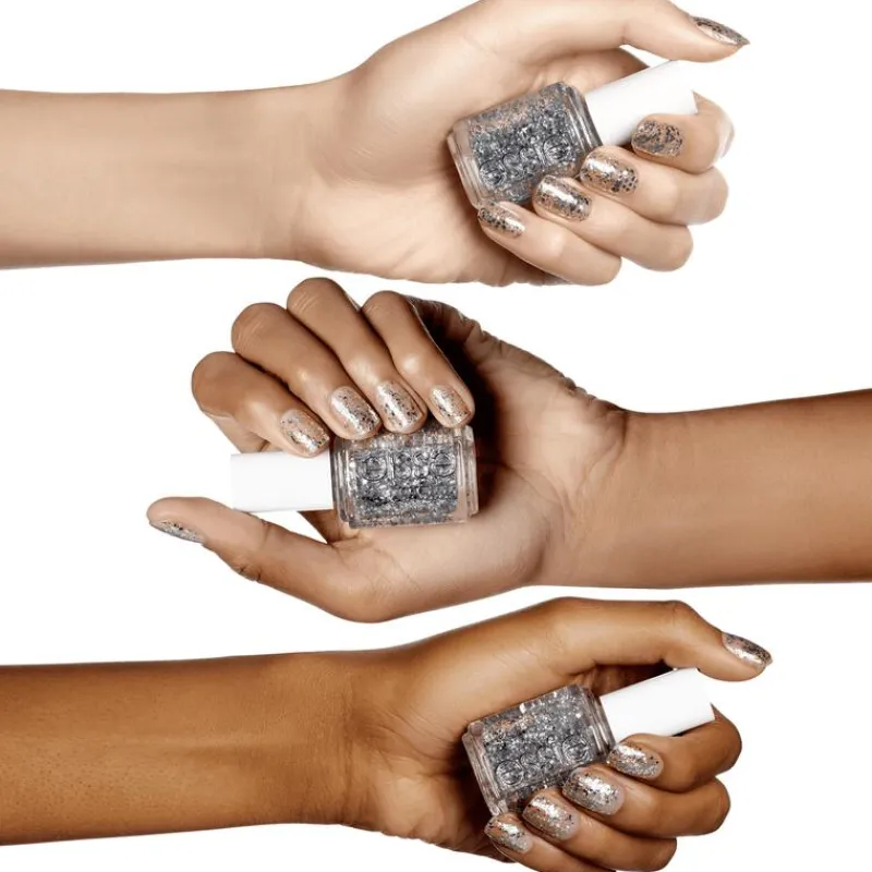 - 278 set in stones is een grijze essie nagellak met glitter finish