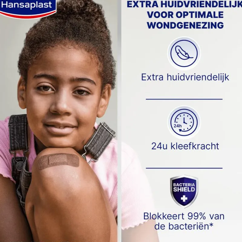 Hansaplast pleisters blokkeert 99% van de bacteriën.