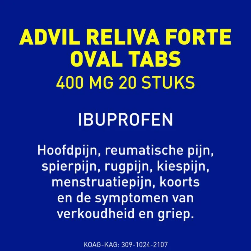 Advil Reliva Forte Oval-Tabs 400 mg, voor effectieve en langdurige pijnverlichting tot 8 uur lang