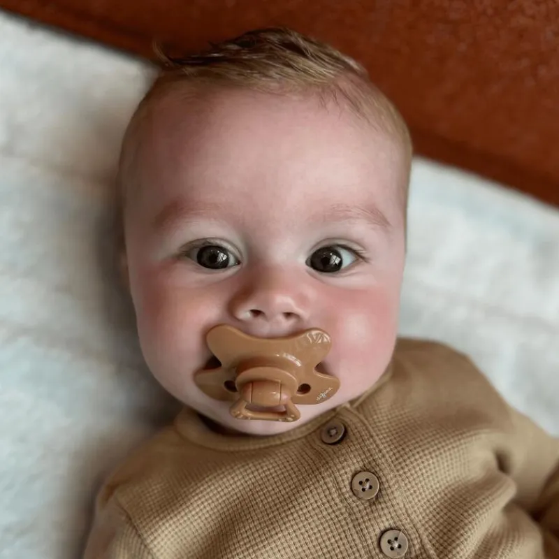 De Difrax UNI collectie fopspenen bestaat uit natuurlijke aardetinten.