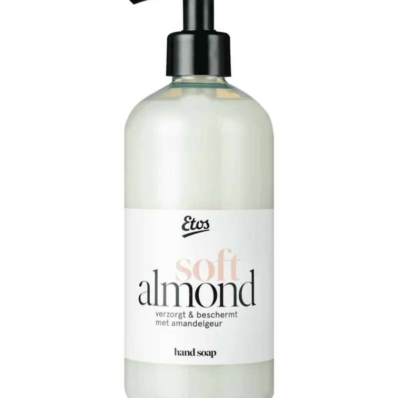 Etos handzeep Soft Almond heeft een zachte amandelgeur. De milde formulering met vochtregulerende glycerine helpt de handen beschermen tegen uitdroging. De huidvriendelijke formule is zacht voor de huid en geschikt voor dagelijks gebruik.