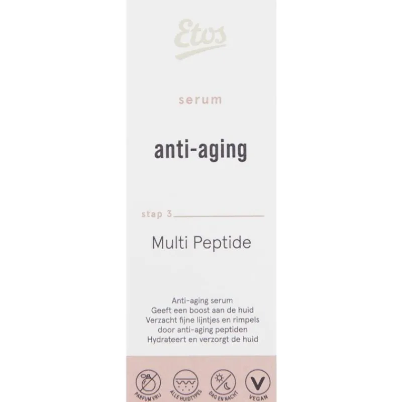 Etos Multi Peptide Serum is een anti-aging serum, die de huid een extra boost geeft door anti-aging peptiden. Fijne lijntjes en rimpeltjes worden verzacht door de vocht inbrengende eigenschappen.