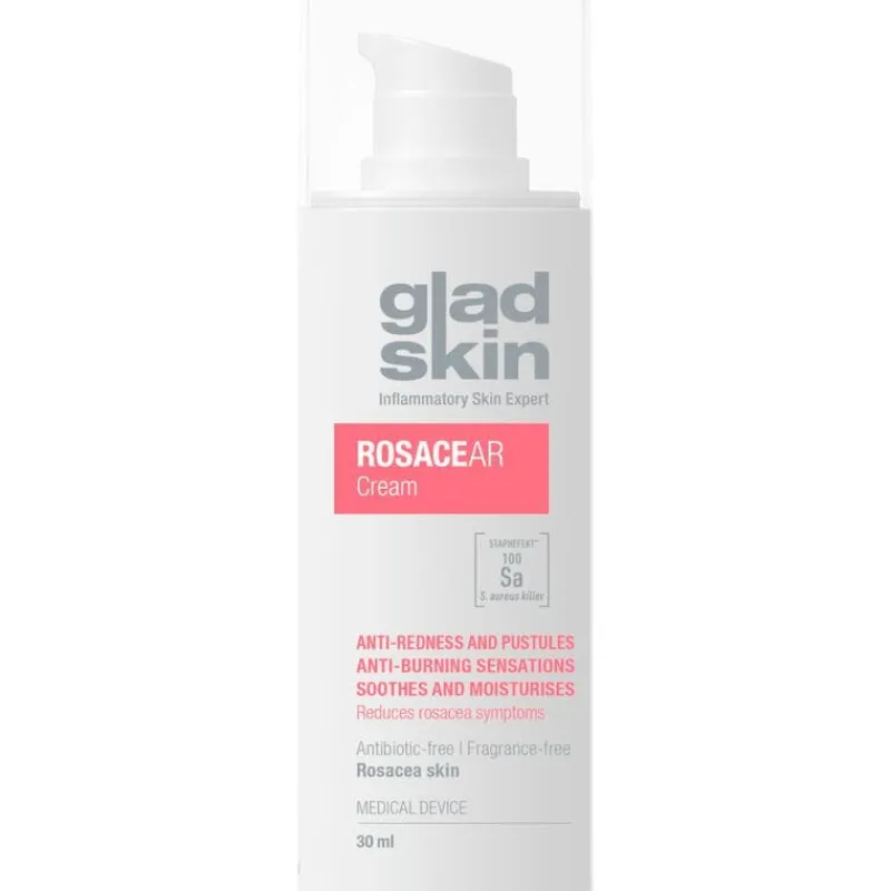 Gladskin Rosacear Cream verlicht rosacea symptomen zoals roodheid en een branderig gevoel. Dit medisch hulpmiddel helpt je huid microbioom in balans te brengen terwijl het de rosacea gevoelige huid verzacht en beschermt.Parfum vrij en hypoallergeen. Veilig voor dagelijks, langdurig gebruik