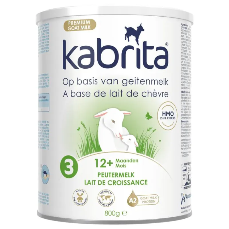 Kabrita Peutermelk 3 is van nature mild en vormt een goede basis voor flesvoeding. Kabrita Peutermelk 3 combineert de natuurlijke eigenschappen van geitenmelk, waaronder de A2-eiwitten en de milde smaak, met waardevolle voedingsstoffen zoals geitenmelkvet, verrijkende 2’-FL en GOS:FOS vezels, BB-12® probiotica, DHA* omega-3-vetzuren van algen. De opvolgmelk is geschikt voor peuters vanaf 12 maanden.