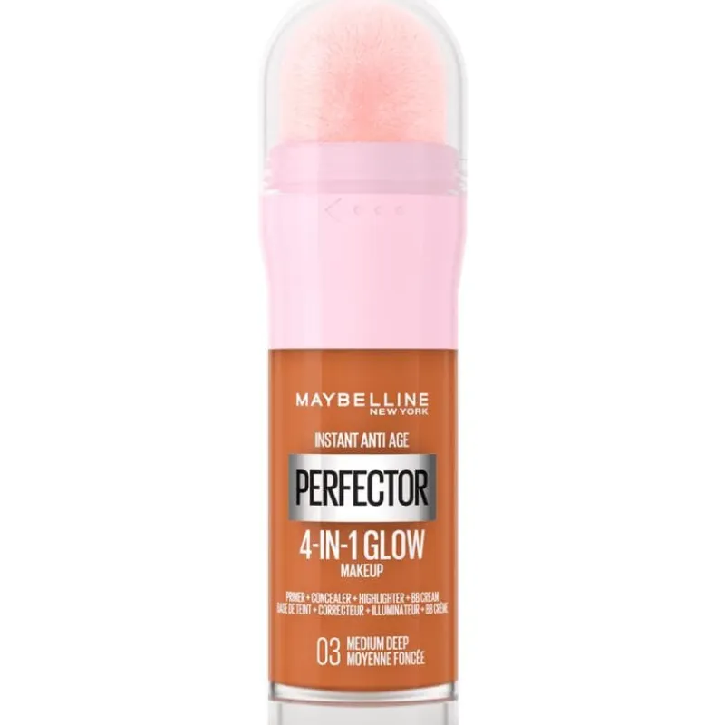 Maak kennis Instant Perfector Glow van Maybelline New York. De eerste 4-in-1 make-up voor een instant glowy look. Instant Perfector Glow geeft je huid de voordelen van vier producten in één. Krijg de look van primer, concealer, highlighter en BB-cream in één gemakkelijke stap. De revolutionaire lichte vegan* formule die de huid vervaagt, concealt, accentueert en egaliseert met een lichte dekking. Door de ingebouwde sponsapplicator breng je het product super gemakkelijk, snel en precies aan voor een perfecte glowy make-up look in een handomdraai! Verkrijgbaar in 7 tinten die zich aanpassen aan je huidskleur.