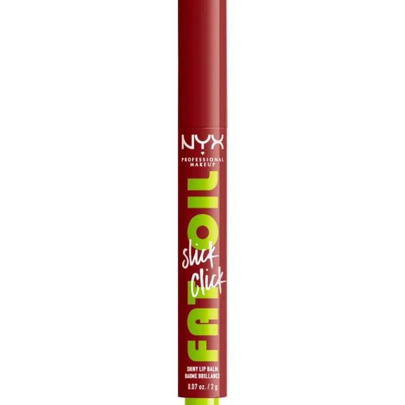 NYX Fat Oil Slick Click is een gepigmenteerde lippenbalsem in klikverpakking die precies de juiste hoeveelheid formule afgeeft. Snel, gemakkelijk en knoeivrij aan te brengen. Het enige wat je hoeft te doen is erop klikken en je lippen onderdompelen in een overvloed aan gunstige eigenschappen! Geef je lippen de verzorging die ze nodig hebben met de vegan formule op basis van avocado-, braambessen- en frambozenolie. Voor een overvloedige hydratatie, tot wel 12 uur lang! De lichte textuur voelt niet-plakkerig en ultracomfortabel aan, perfect voor dagelijks gebruik. Creëer een gladde, glanzende finish met luchtige pigmenten die voor royale accenten zorgen. Gepigmenteerde balsem in opklikbare verpakking voor een lichte kleur met een niet-plakkerige, glanzende afwerking en hydratatie Stap 1. Breng #thisiseverything lipscrub aan om je lippen te helpen hydrateren en verzachten.Stap 2. Gebruik de Fat Oil Slick Click voor een vleugje kleur en een langdurige hydratatie.Stap 3. Combineer Slick Click met een lipliner voor extra diepte en kleur. NYX Fat Oil Slick Click is een gepigmenteerde lippenbalsem in klikverpakking die precies de juiste hoeveelheid formule afgeeft. Snel, gemakkelijk en knoeivrij aan te brengen. Het enige wat je hoeft te doen is erop klikken en je lippen onderdompelen in een overvloed aan gunstige eigenschappen! Geef je lippen de verzorging die ze nodig hebben met de vegan formule op basis van avocado-, braambessen- en frambozenolie. Voor een overvloedige hydratatie, tot wel 12 uur lang! De lichte textuur voelt niet-plakkerig en ultracomfortabel aan, perfect voor dagelijks gebruik. Creëer een gladde, glanzende finish met luchtige pigmenten die voor royale accenten zorgen.Dit product is 100% veganistisch en vrij van dierlijke bestanddelen. Verantwoorde make-up! De formule glijdt moeiteloos en gelijkmatig over je lippen heen. Extreem zacht. Extreem gunstig. Verkrijgbaar in 12 meerdere tinten die geschikt zijn voor alle huidskleuren. Ontdek het snel en ga voor een extreem glanzende look of combineer met een lipliner voor extra diepte en kleur!NYX Professional staat bekend om haar kwalitatieve, pigmentrijke make-upproducten en weerspiegelt de nieuwste make-up trends. In het portfolio van NYX vind je alles, van lippenstiften en oogschaduw tot eyeliners en concealers. Zowel populair bij het grote publiek, als bij professionele visagisten over de hele wereld!
