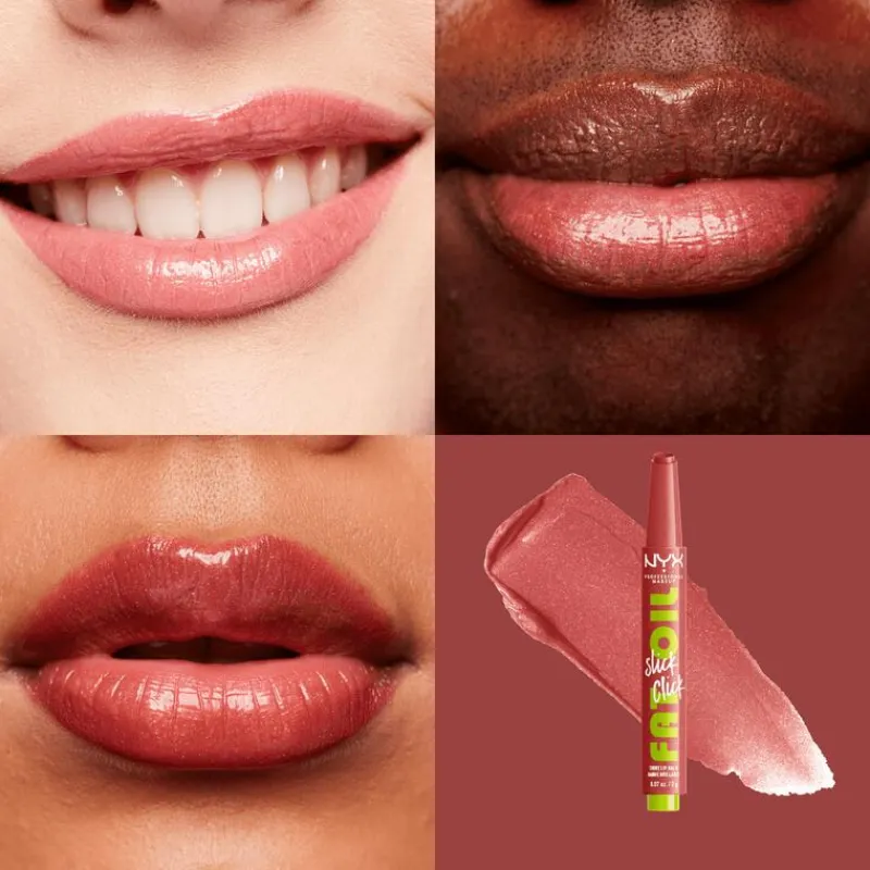 NYX Fat Oil Slick Click is een gepigmenteerde lippenbalsem in klikverpakking die precies de juiste hoeveelheid formule afgeeft. Snel, gemakkelijk en knoeivrij aan te brengen. Het enige wat je hoeft te doen is erop klikken en je lippen onderdompelen in een overvloed aan gunstige eigenschappen! Geef je lippen de verzorging die ze nodig hebben met de vegan formule op basis van avocado-, braambessen- en frambozenolie. Voor een overvloedige hydratatie, tot wel 12 uur lang! De lichte textuur voelt niet-plakkerig en ultracomfortabel aan, perfect voor dagelijks gebruik. Creëer een gladde, glanzende finish met luchtige pigmenten die voor royale accenten zorgen. Gepigmenteerde balsem in opklikbare verpakking voor een lichte kleur met een niet-plakkerige, glanzende afwerking en hydratatie Stap 1. Breng #thisiseverything lipscrub aan om je lippen te helpen hydrateren en verzachten.Stap 2. Gebruik de Fat Oil Slick Click voor een vleugje kleur en een langdurige hydratatie.Stap 3. Combineer Slick Click met een lipliner voor extra diepte en kleur. NYX Fat Oil Slick Click is een gepigmenteerde lippenbalsem in klikverpakking die precies de juiste hoeveelheid formule afgeeft. Snel, gemakkelijk en knoeivrij aan te brengen. Het enige wat je hoeft te doen is erop klikken en je lippen onderdompelen in een overvloed aan gunstige eigenschappen! Geef je lippen de verzorging die ze nodig hebben met de vegan formule op basis van avocado-, braambessen- en frambozenolie. Voor een overvloedige hydratatie, tot wel 12 uur lang! De lichte textuur voelt niet-plakkerig en ultracomfortabel aan, perfect voor dagelijks gebruik. Creëer een gladde, glanzende finish met luchtige pigmenten die voor royale accenten zorgen.Dit product is 100% veganistisch en vrij van dierlijke bestanddelen. Verantwoorde make-up! De formule glijdt moeiteloos en gelijkmatig over je lippen heen. Extreem zacht. Extreem gunstig. Verkrijgbaar in 12 meerdere tinten die geschikt zijn voor alle huidskleuren. Ontdek het snel en ga voor een extreem glanzende look of combineer met een lipliner voor extra diepte en kleur!NYX Professional staat bekend om haar kwalitatieve, pigmentrijke make-upproducten en weerspiegelt de nieuwste make-up trends. In het portfolio van NYX vind je alles, van lippenstiften en oogschaduw tot eyeliners en concealers. Zowel populair bij het grote publiek, als bij professionele visagisten over de hele wereld!