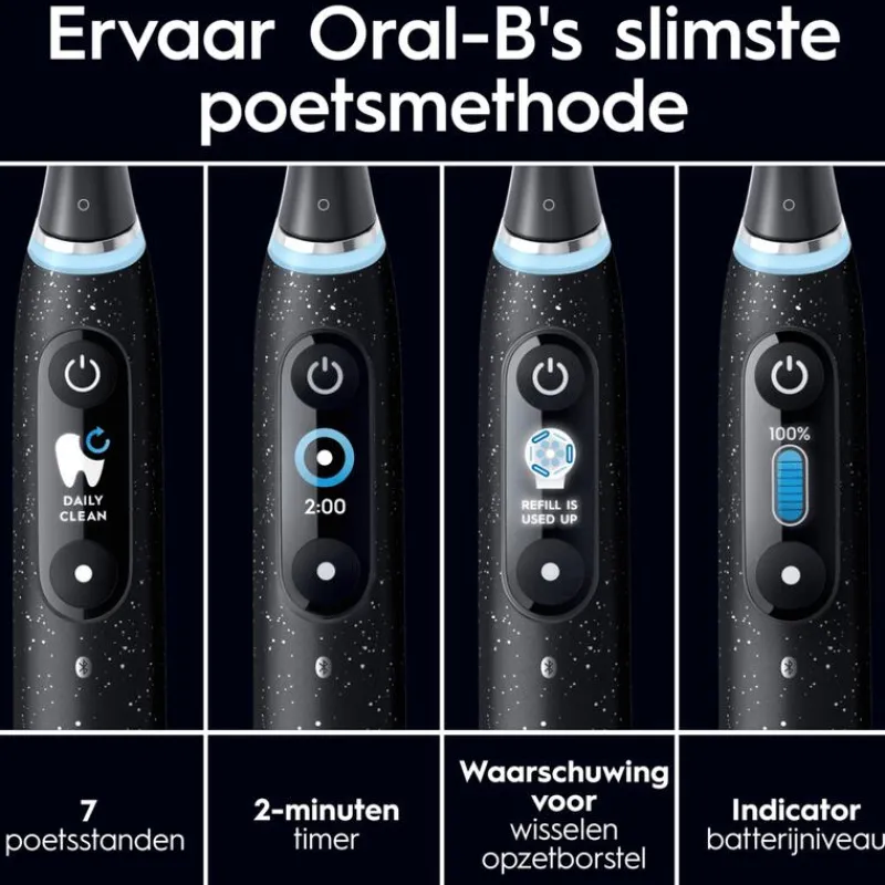 - Schakel over op de meest geavanceerde technologie van Oral-B voor 100% meer verwijdering van tandplak in maar 1 week en zelfs 300% meer langs de tandvleesrand dan een handmatige borstel