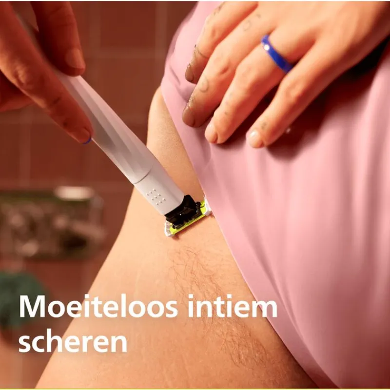 Ga voor comfortabel intiem scheren met OneBlade Intimate! Het SkinProtect-mesje met extra laag bescherming is ontworpen om je huid te beschermen tegen sneetjes, wondjes en huidirritatie. Dankzij het unieke design wordt je huid strakgetrokken, voor minder frictie en optimale resultaten. Scheer schaamhaar comfortabel af of gebruik de 3mm dubbelzijdige trimkam voor een snelle en efficiënte trimbeurt. Gebruik OneBlade Intimate droog, met scheerschuim of onder de douche. Elk mesje gaat tot 4 maanden mee*.