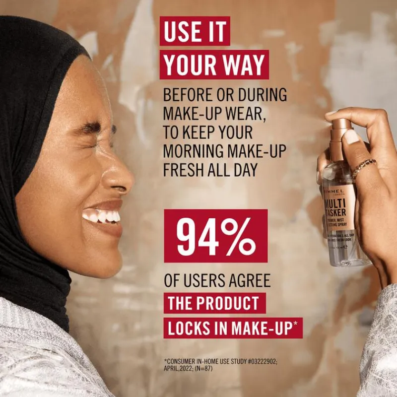 Rimmel 3-in-1 Multi-Tasker Primer, Mist & Setting Spray met verfrissend effect bereidt de huidt voor en fixeert de hele dag lang.