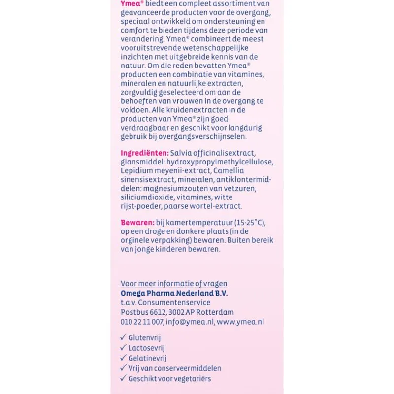 * Gezondheidsclaim in afwachting van Europese toelating Benieuwd wat Ymea nog meer te bieden heeft? Bekijk dan snel een totaaloverzicht van alle Ymea producten. Overgang, Overgangsproducten, Overgangstabletten