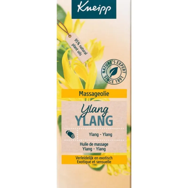 De Kneipp® Massageolie Ylang-Ylang met de etherische olie van de ylang-ylangboom zorgt voor verleidelijke en exotische momenten. Voedende jojobaolie, vochtregulerende amandelolie en celbeschermende vitamine E voeden en regenereren de huid en maken deze fluweelzacht.