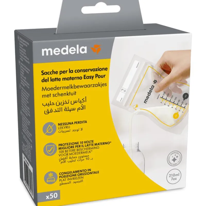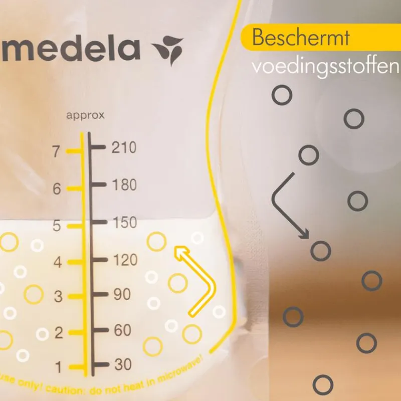 Ontdek de vernieuwde Medela moedermelkbewaarzakjes met schenktuit, ideaal voor bewaren, koelen en invriezen van moedermelk. Deze lekvrije, extra stevige zakjes zijn vooraf ontsmet en direct klaar voor gebruik. De handige schenktuit maakt het mogelijk om melk met één hand te gieten zonder morsen. Dankzij de wijde opening en dubbele lagen behoudt de melk belangrijke voedingsstoffen en blijft veilig door de superieure zuurstofbarrière. De zakjes zijn BPA-vrij en gemaakt van recyclebaar materiaal. Met een capaciteit van 210 ml en een praktisch transportzakje, zijn ze perfect voor thuis en onderweg.
