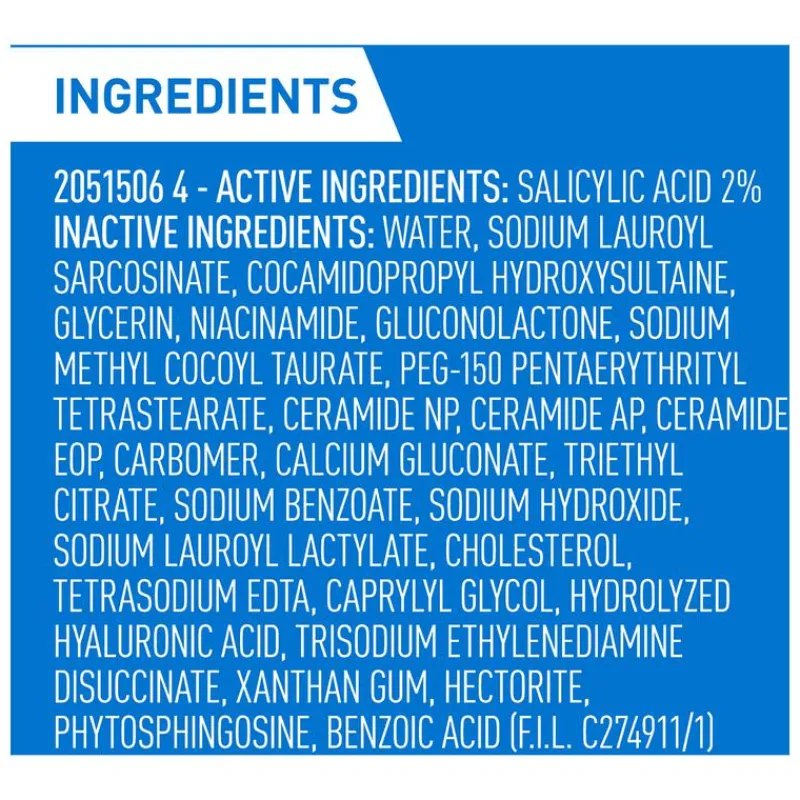 AQUA / WATER • COCAMIDOPROPYL HYDROXYSULTAINE • GLYCERIN • SODIUM LAUROYL SARCOSINATE • NIACINAMIDE • SALICYLIC ACID • SODIUM METHYL COCOYL TAURATE • PEG-150 PENTAERYTHRITYL TETRASTEARATE • GLUCONOLACTONE • SODIUM COCOYL ISETHIONATE • CERAMIDE NP • CERAMIDE AP • CERAMIDE EOP • CARBOMER • CALCIUM GLUCONATE • TRIETHYL CITRATE • SODIUM HYDROXIDE • SODIUM BENZOATE • SODIUM CHLORIDE • SODIUM LAUROYL LACTYLATE • CHOLESTEROL • COCONUT ACID • TETRASODIUM EDTA • CAPRYLYL GLYCOL • HYDROLYZED HYALURONIC ACID • TRISODIUM ETHYLENEDIAMINE DISUCCINATE • HECTORITE • PHYTOSPHINGOSINE • XANTHAN GUM • ACRYLATES COPOLYMER • BENZOIC ACID