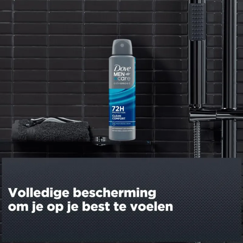 Geniet tot 72 uur lang van zweet-, geur- en huidbescherming met een langdurige frisse geur, dankzij Dove Men+Care Advanced Clean Comfort Anti-Transpirant Deodorant Spray.