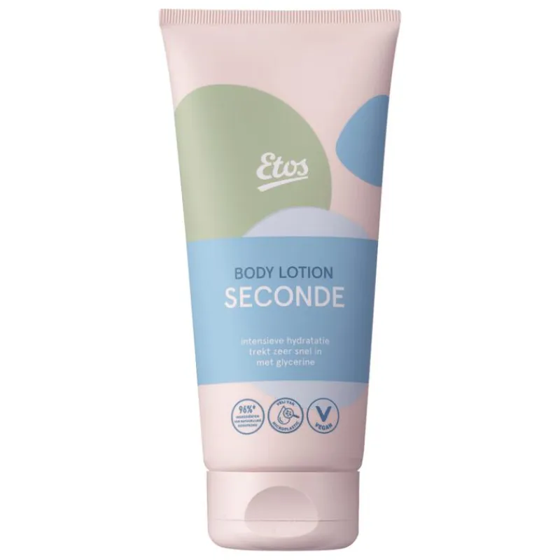 Etos Body Care Body lotion Seconde trekt super snel in de huid en hydrateert intensief. Dit product is een niet vette bodylotion, dus je kunt met een gerust hart je kleding aantrekken.