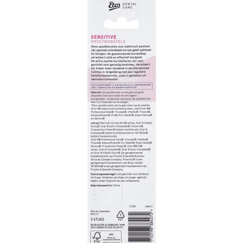 Etos Sensitive clean opzetborstels voor elektrisch poetsen zijn speciaal ontwikkeld om het gebit optimaal te reinigen.