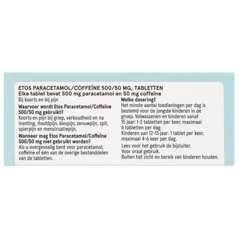 #Het is belangrijk om niet te veel te gebruiken, want dan kan dit geneesmiddel lever- en nierklachten geven. Wij adviseren u voor gebruik de bijsluiter te lezen.#Dit geneesmiddel geeft risico op hoofdpijn bij lang gebruik tegen hoofdpijn. Wij adviseren u voor gebruik de bijsluiter te lezen.#Stop direct met het gebruik bij huiduitslag of wondjes in de mond en neem contact op met een arts.