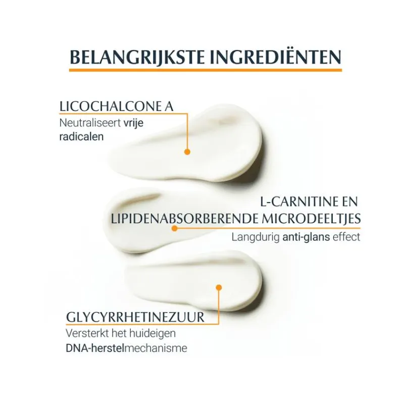 Eucerin Sun Oil Control Gel-Crème SPF 50+ is dagelijks te gebruiken zonnebrand met een hoge uv-bescherming voor het gezicht, speciaal voor de vette- en acnegevoelige huid. Deze geavanceerde technologie biedt doeltreffende bescherming tegen schade door UV-straling en bevat actieve ingrediënten om de huidconditie te verbeteren. Het product bevat een zeer effectief UVA en UVB filter systeem voor een betrouwbare bescherming. Conform de richtlijn van de Europese Commissie voor Cosmetica Europa (koepelorganisatie van de cosmetica-industrie, voorheen Colipa). De formule bevat daarnaast ook een unieke biologische cel bescherming, met een combinatie van Licochalcone A en Glycyrrhetinezuur. Licochalcone A is afkomstig uit de zoethoutwortel en is een anti-oxidatief en ontstekingsremmend ingrediënt dat de cellen beschermt tegen de vrije radicalen. Glycyrrhetinezuur beschermt DNA door het ondersteunen van het huideigen DNA en herstelmechanisme.