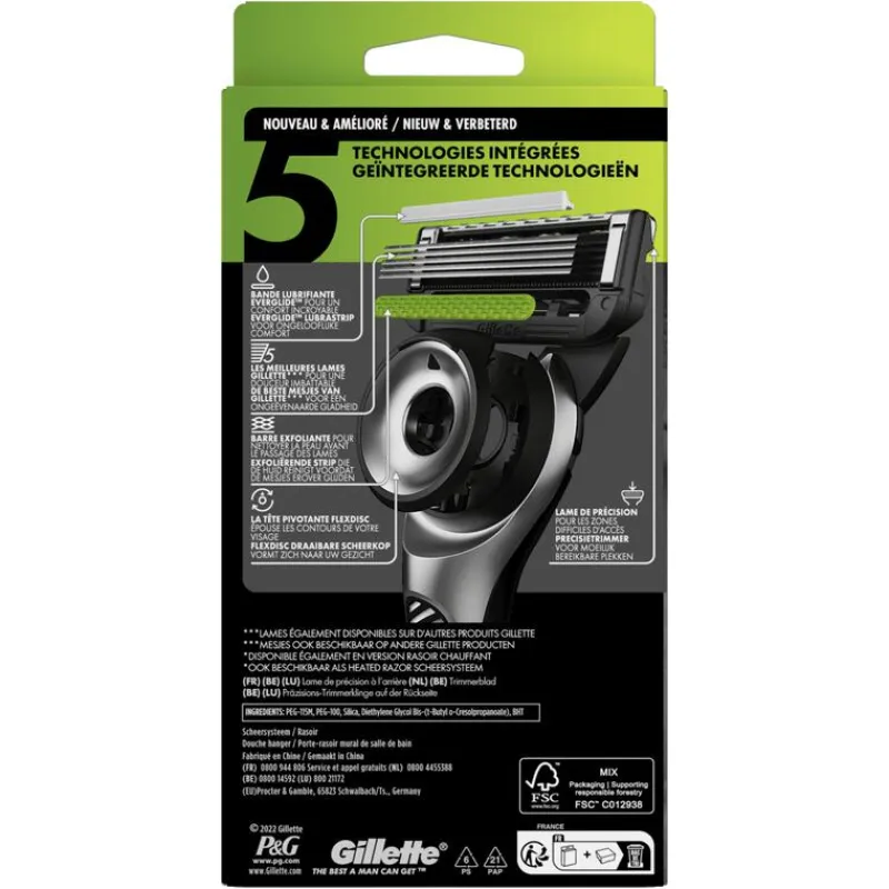 - Onovertroffen gladheid dankzij 5 van de beste mesjes van Gillette* (*mesjes ook beschikbaar op andere Gillette-producten) EVERGLIDETM Lubrastrip zorgt voor lubricatie voor ongelooflijk huidcomfort
