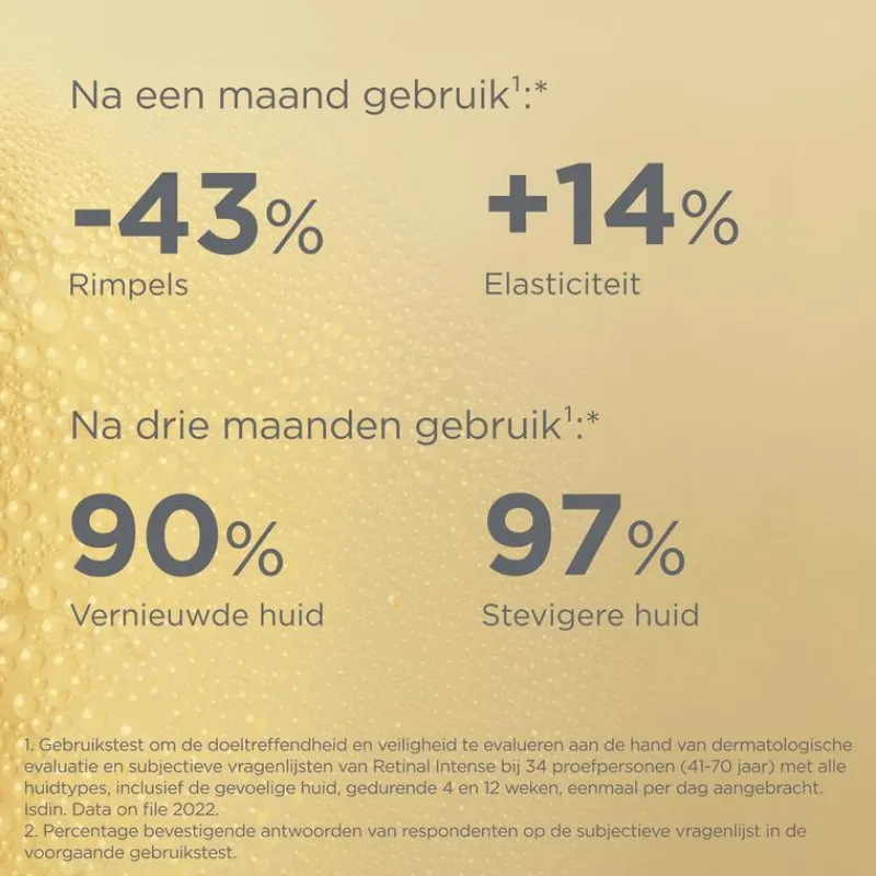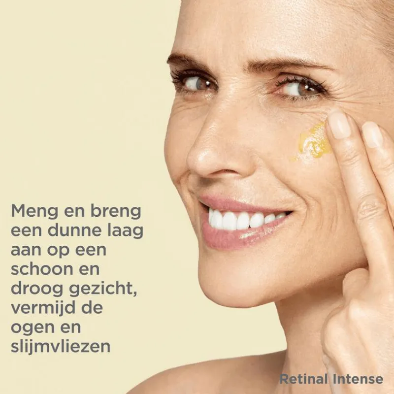 Pronk met een zichtbaar jongere huid met Retinal Intense, het tweefasige nachtserum met retinaldehyde dat de huidvernieuwing helpt versnellen. Na 1 maand gebruik vermindert het rimpels en expressielijnen met 43% voor een gladdere, uniformere huid met een verjongd uiterlijk.