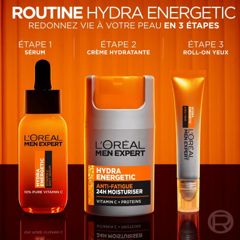 De Hydra Energetic lijn van Men Expert is speciaal ontwikkeld voor de man met een intensieve levensstijl. Work hard, play hard? Dan kan je huid wel een energy boost gebruiken. De Hydra Energetic lijn biedt diverse innovatieve formules om er uitgeruster uit te zien. Tekenen van vermoeidheid worden verminderd en je huid wordt opgeladen met energie. Reinig, verzorg en ontwaak met Hydra Energetic van L’Oréal Men Expert.