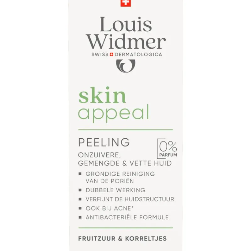 Louis Widmer skinappeal Peeling is een antibacteriële peeling met een 2-in-1 formule: mechanisch en met fruitzuren.