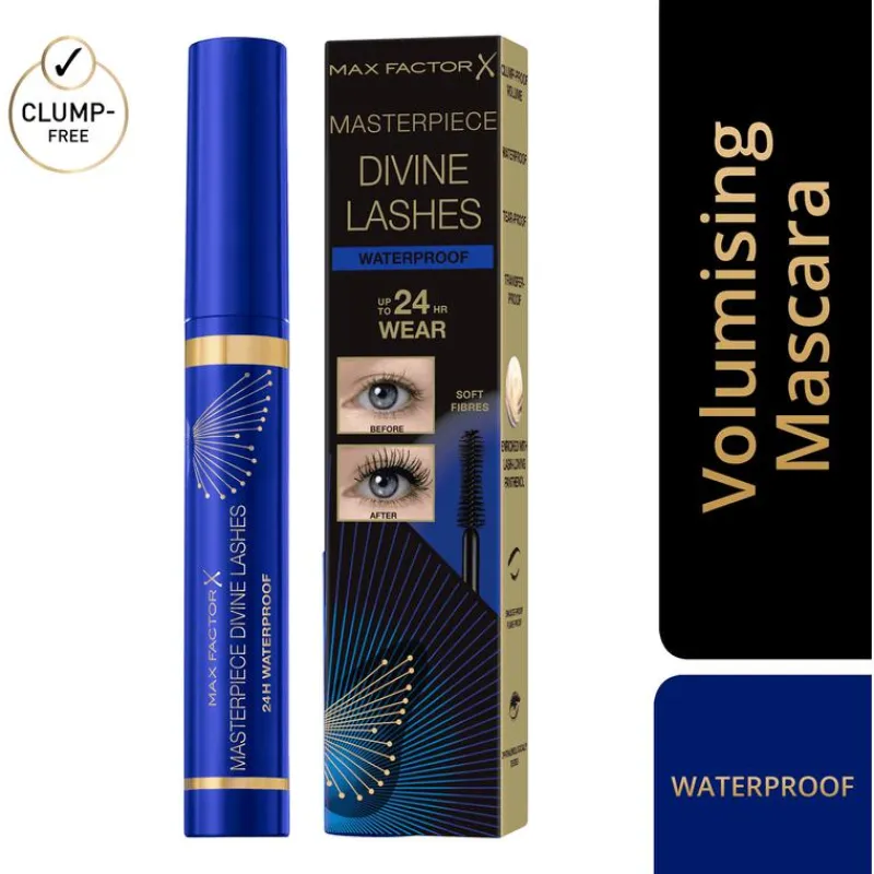 Max Factor Divine Lashes mascara waterproof is dé mascara die je oogverblinde lange en volumineuze wimpers geeft die goddelijk zacht aanvoelen. De formule voelt ultra licht aan op je wimpers en breng je laag voor laag aan om een onweerstaanbaar dramatisch en volumineus wimpereffect te creëren. De Max Factor Divine Lashes Mascara is verrijkt met panthenol, deze pro-vitamine B5 zorgt voor soepele en zachte wimpers. Dit maakt de Divine Lashes Mascara ook geschikt voor contactlensdragers. De rijke romige formule brengt veegvast en gelijkmatig aan. Het definieert de wimpers vanaf de aanzet tot aan de top zonder te klonteren. De fijne borstelapplicator ligt prettig in de hand, is extreem zacht en brengt de mascara vlokvrij aan. Het verdeelt de mascara met precisie, iedere wimper wordt gedekt voor een ultra natuurlijk volumineuze finish.