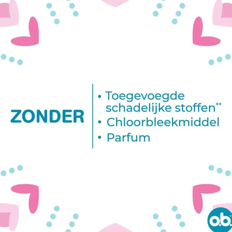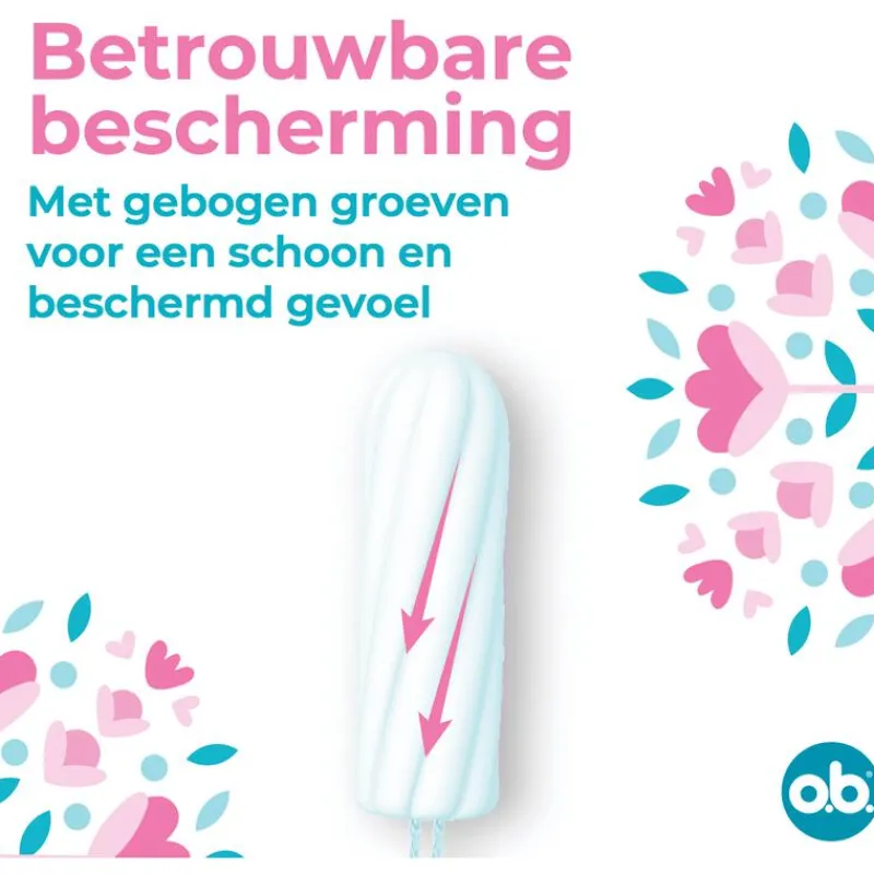 o.b.® Original Super Plus tampons met gebogen groeven leiden de vloeistof efficiënt naar de kern van de tampon. De StayDry-technologie zorgt voor een droog koordje en een fris en schoon gevoel. o.b.® Original Super Plus tampons zijn ideaal voor zeer zware menstruatiedagen. De tampons zijn gynaecologisch getest, hebben een kern die 100% plantaardig is, zonder schadelijke chemische stoffen (o.a. pesticiden). o.b.® Original Super Plus tampons zijn chloor- en parfumvrij.