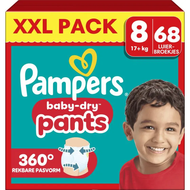 Als je baby actiever wordt, wil je een luierbroekje dat al zijn bewegingen kan bijhouden. Pampers Baby-Dry Pants luierbroekjes bieden superieure bescherming rondom tegen lekken, in welke houding je baby zich ook bevindt – dag en nacht. Pampers Baby-Dry Pants luierbroekjes Stop & Protect Systeem heeft: 2x bredere* beschermrandjes die lekken rond de beentjes helpen voorkomen, een superabsorberende kern en een 360° flexibele tailleband, die zich aan het lichaam van je baby aanpast terwijl hij beweegt en een superabsorberende kern die tot 12 uur bescherming biedt. Net als alle andere Pampers luierbroekjes zijn de Pampers Baby-Dry Pants luierbroekjes heel eenvoudig te verschonen, zelfs als je baby veel beweegt: je trekt ze in één beweging aan, scheurt de zijkanten open om ze uit te trekken, rolt ze op en gebruikt de plakstrip om ze weg te gooien.