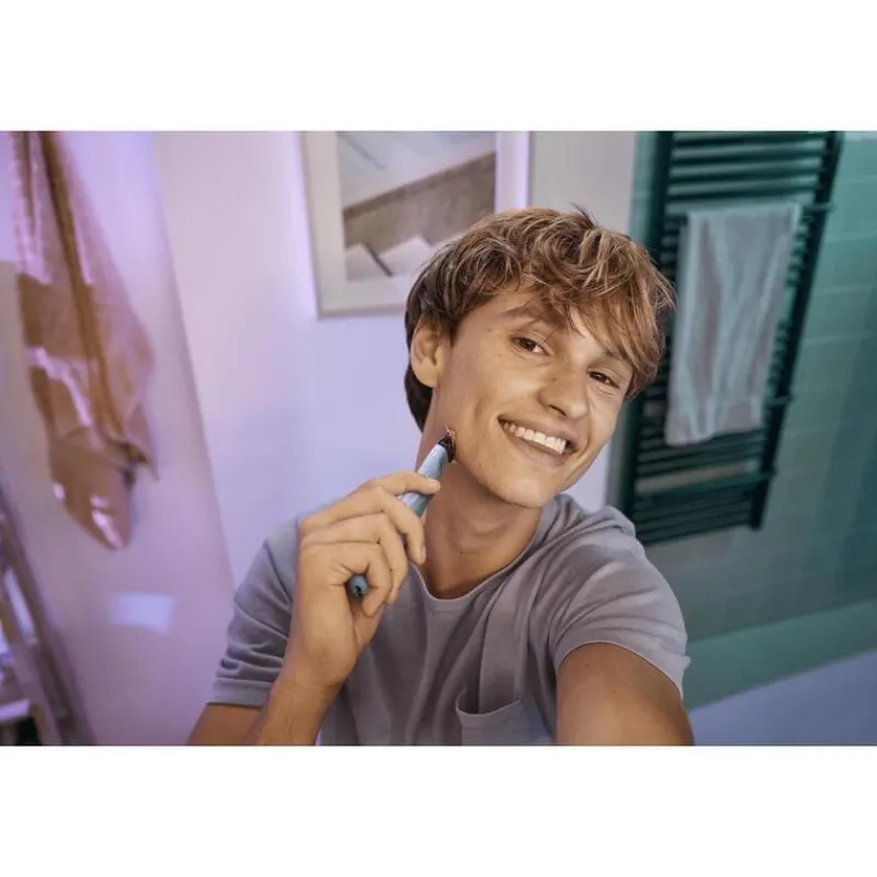 Net begonnen met scheren? Ervaar een moeiteloze eerste scheerbeurt met de Philips OneBlade First Shave. Bescherm je huid tegen sneetjes en wondjes met de Anti-Frictie Blade, die soepeler over je huid glijdt zodat jij minder snel last hebt van huidirritatie*. Gebruik de OneBlade First Shave zoals jij dat wil: makkelijk droog of verfrissend nat. Elk mesje gaat tot 4 maanden mee**.