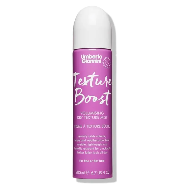 Volume Boost Dry Texture Mist van Umberto Giannini is een krachtige haarstylingspray die speciaal is ontworpen om het haar een natuurlijk ogende textuur en volume te geven. Deze mist is ideaal voor mensen die op zoek zijn naar een product dat hun haar op een eenvoudige en effectieve manier kan stylen, zonder het gebruik van zware stylingproducten.