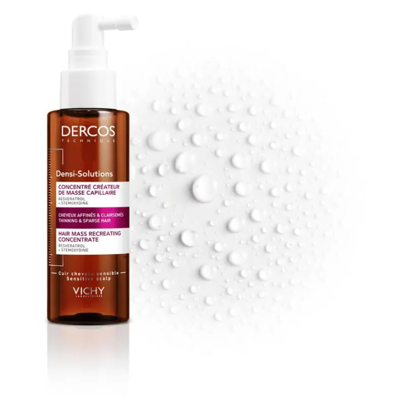 Het Densi-Solutions Verdichtend Concentraat van Vichy Dercos Technique is een haarmassaverhogende behandeling voor de hoofdhuid die werkt op de wortels, voor zichtbaar sterkere en dikkere haren. Vanaf het eerste gebruik vergroot deze behandeling de haarmassa en zijn de verdichtende effecten na 6 weken continu gebruik klinisch bewezen.