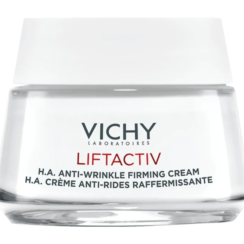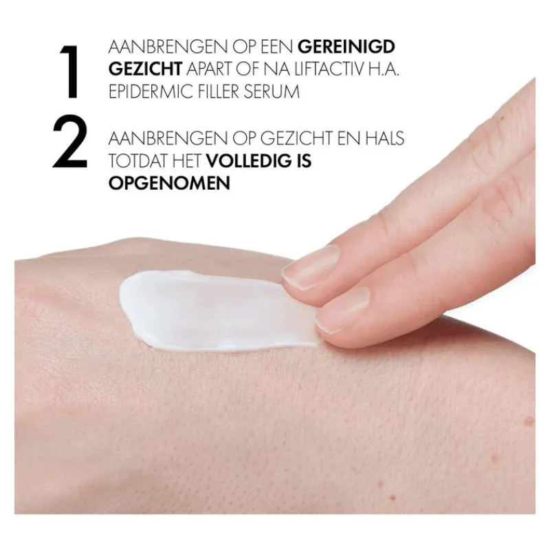 VICHY LIFTACTIV H.A. ANTI-RIMPELS VERSTEVIGENDE CRÈME DROGE TOT ZEER DROGE HUID 50ml is een lichte, comfortabele anti-aging dagcrème die gelijk in de huid smelt. Het geeft de hele dag lang een fris gevoel aan het huidoppervlak. Niet-plakkerig, niet-vettig. Deze dagcrème biedt langetermijnresultaat, maar vooral direct effect: nu, vanavond, morgenochtend na het ontwaken. Vichy’s nieuwe generatie in dagverzorging is erop gericht dagelijkse huidveroudering in een handomdraai terug te draaien. Hiernaast is LIFTACTIV H.A. een ideale dagcrème voor onder zonnebrandcrème of make-up. Er is voor een geur gekozen die het risico op allergie zoveel mogelijk minimaliseert.