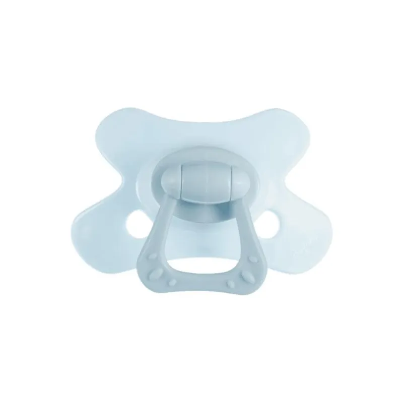 Difrax heeft 2 soorten spenen, waarvan deze speen de Natural vorm heeft. Het zuigdeel van de Natural vorm heeft een rond en ovaal uiteinde van siliconen met een platte basis. Dit maakt dat de speen makkelijk wordt geaccepteerd. Voor kindjes die hun speen graag ronddraaien in hun mondje is deze ook geschikt, omdat de speen omgedraaid dezelfde vorm heeft. De vlindervorm zorgt er tevens voor dat je baby vrij kan ademen door de neus. De gaatjes geven extra luchttoevoer en voorkomen hiermee huidirritatie.