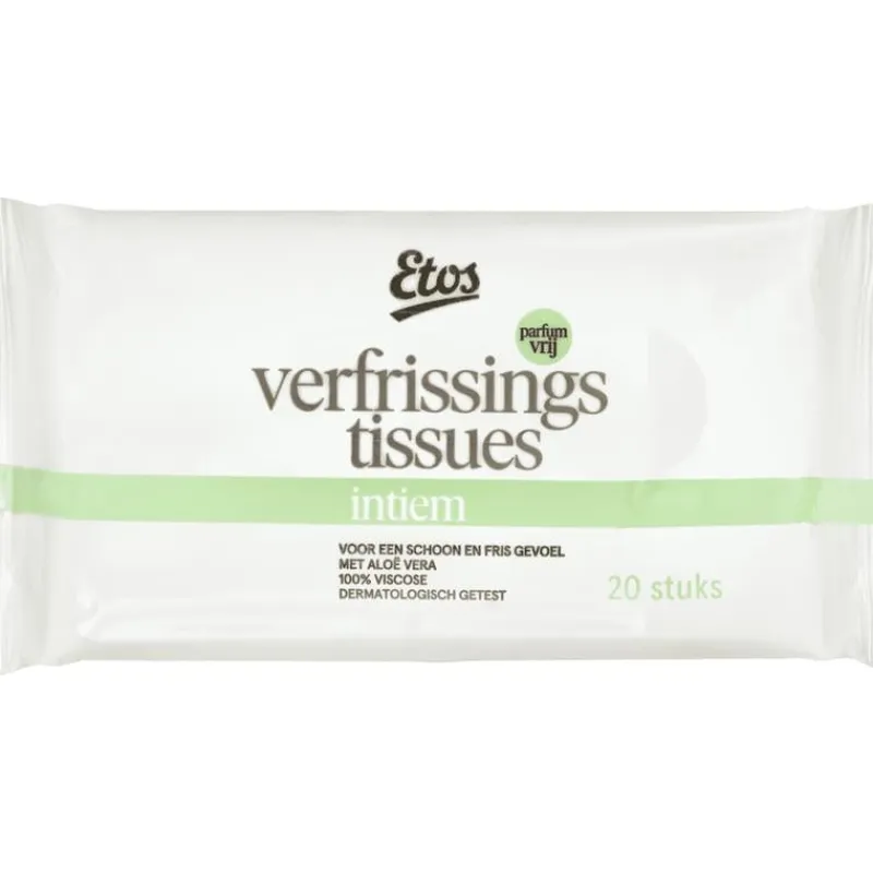 Met Etos zachte verfrissings tissues verfris je hygiënisch de intieme zone.