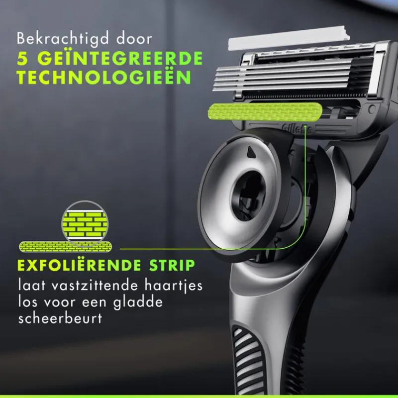 Gebruik met GilletteLabs navulmesjes die ook geschikt zijn voor de GilletteLabs Heated Razor. De exfoliërende strip van Gillette maakt het pad vrij op je huid voor de mesjes. De 2D FlexDisc-technologie volgt je gezicht voor comfort en contact bij elke beweging.