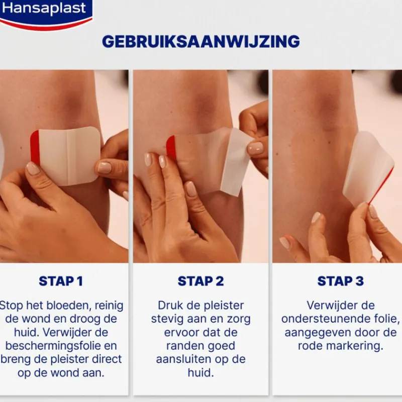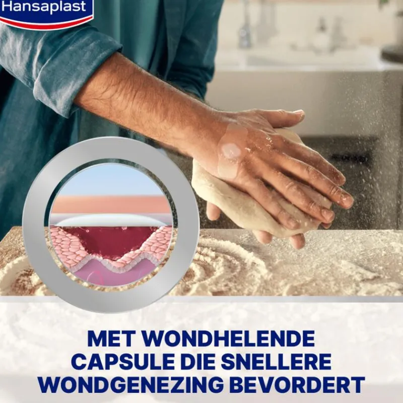 Raadpleeg een arts voor gebruik indien u diabetes heeft. Gebruik staken als er lokale huidreacties optreden. Als er tekenen van infectie optreden zoals roodheid, warmte, pijn, jeuk of een branderig gevoel dan moet u de pleister direct verwijderen en medische hulp inschakelen als de tekenen aanhouden. *Consumententest, 1916 vrijwilligers, **Vergeleken met Hansaplast Aqua Protect XL Snelle Wondgenezing