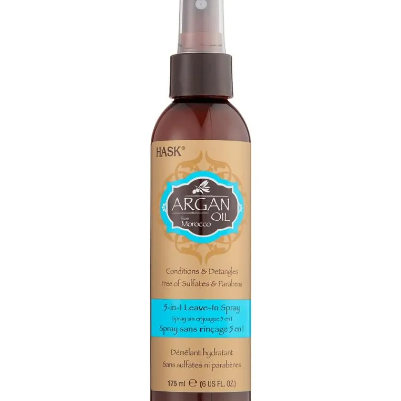 Verwen je haar met de Hask Argan Oil 5-In-1 Leave-In Spray. Deze versterkende leave-in spray voedt en ontklit, geeft glans, herstelt en verwijdert pluis. Ideaal voor droog en beschadigd haar. De Hask Argan Oil 5-In-1 Leave-In Spray is vrij van sulfaten, parabenen en kunstmatige kleurstoffen en bevat een frisse citrusgeur.