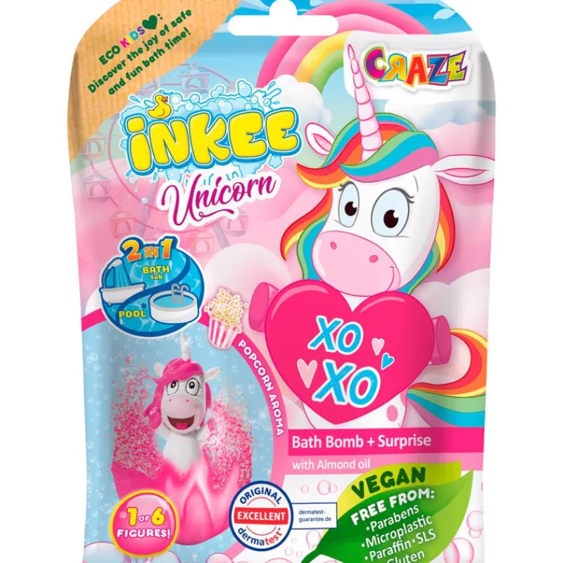 Met de INKEE Surprise Bath Bomb Unicorn wordt badtijd een magisch avontuur. De bruisbal kleurt het water en onthult een schattige unicorn-surprise. Vegan en biologisch afbreekbaar, voor zorgeloos speelplezier.