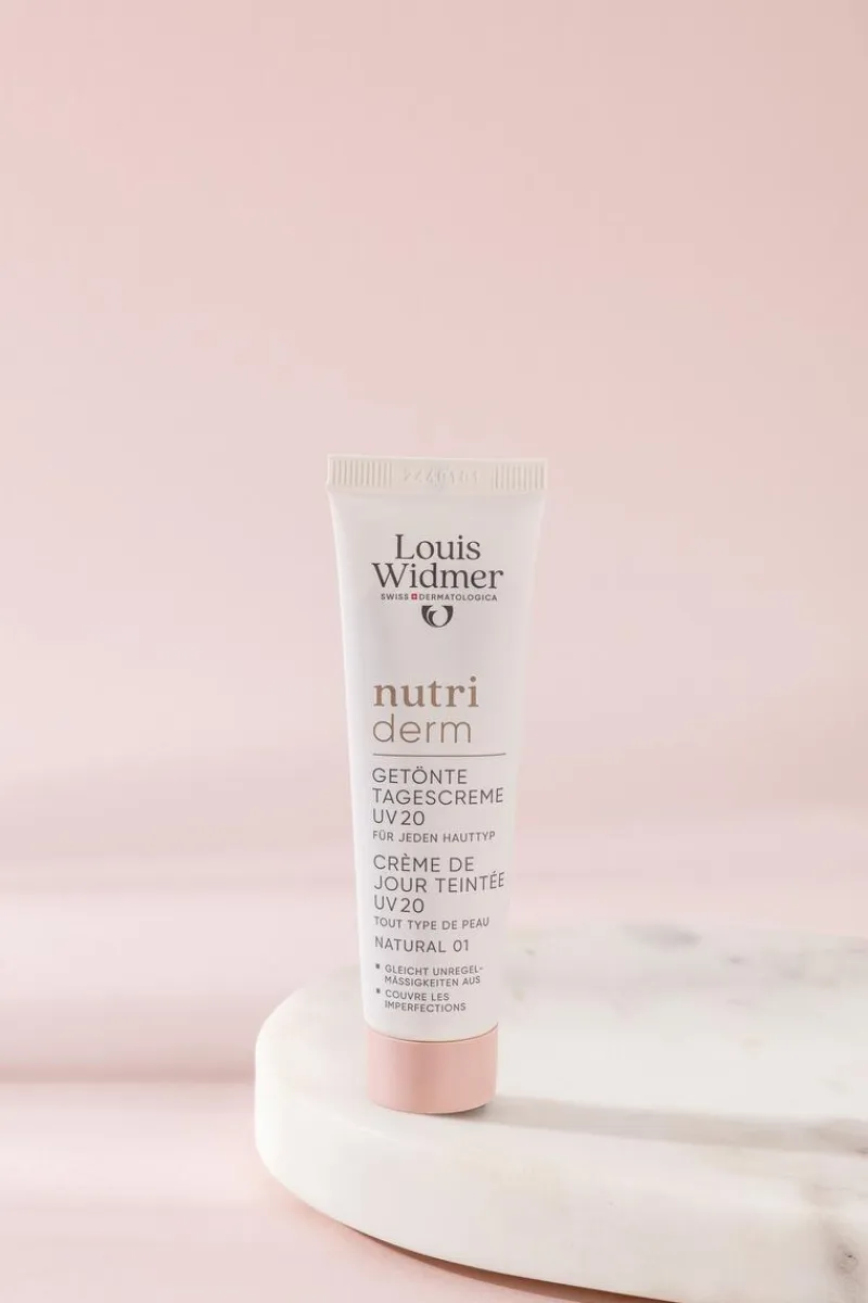 Louis Widmer nutriderm Getinte Dagcrème UV 20 is een getinte dagverzorging met UV-bescherming die de teint in balans brengt en de huid een frisse, egale uitstraling geeft.