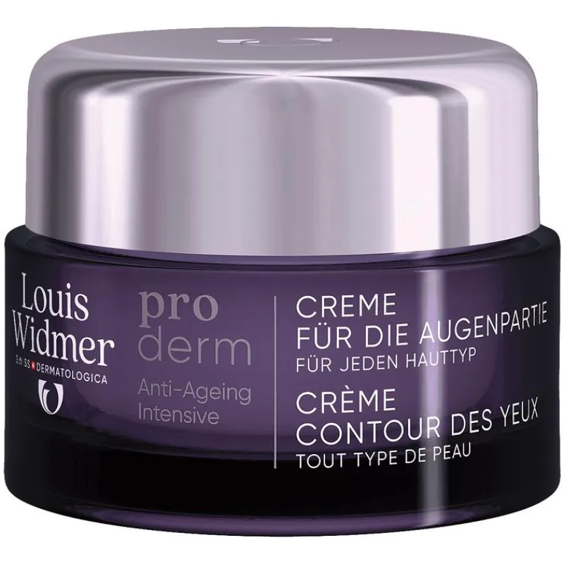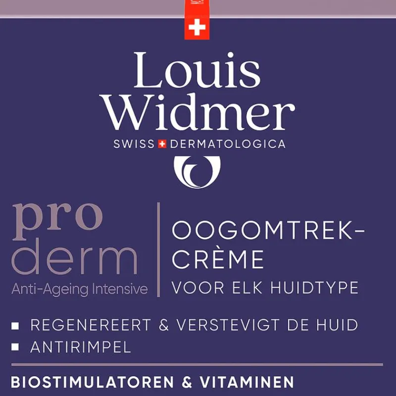 Louis Widmer proderm Oogomtrekcrème is een anti-ageing crème voor de oogomtrek, met vitamine A en het biostimulatorencomplex van Louis Widmer.