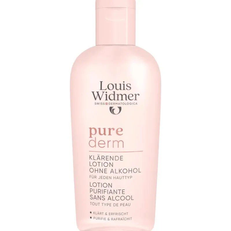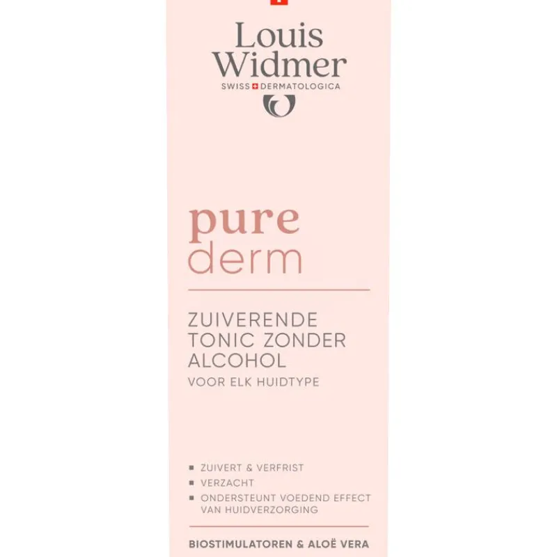 Louis Widmer purederm Zuiverende Tonic zonder Alcohol is een milde tonic met aloë vera die de huid verfrist en zuivert, en voorbereidt op de volgende dag- of nachtverzorging.