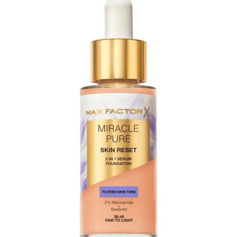 - Deze Max Factor foundation is verrijkt met een reset complex van 2% niacinamide en bisabolol en is klinisch en dermatologisch getest. Deze bekende skin care ingrediënten helpen om een ongelijkmatige teint te verbeteren, fijne lijntjes en rimpels te vervagen, poriën te verfijnen en dofheid te verminderen.