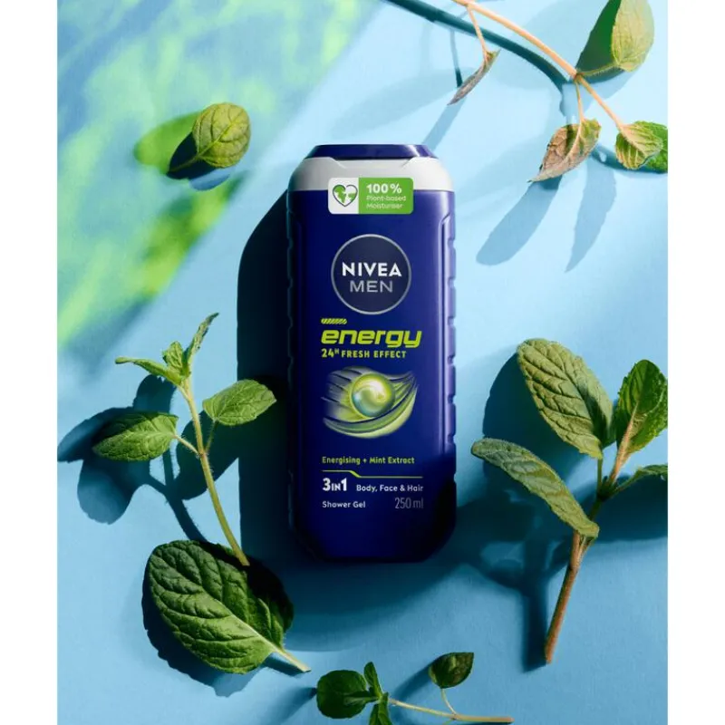 Ervaar een verkwikkende boost met NIVEA MEN Energy Douchegel – speciaal ontwikkeld voor mannen die elke dag fris en energiek willen beginnen. Deze 3-in-1 formule met activerend mintextract reinigt lichaam, gezicht en haar op milde wijze en zorgt voor een intens fris gevoel. De pH-huidneutrale, dermatologisch goedgekeurde formule verzorgt de huid intensief zonder uit te drogen. De frisse mintgeur stimuleert je zintuigen en geeft je lichaam en geest nieuwe energie.