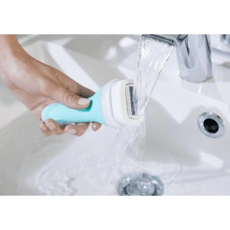 - Haal het scheermesje steeds zachtjes en behoedzaam over de huid en oefen nooit druk uit.