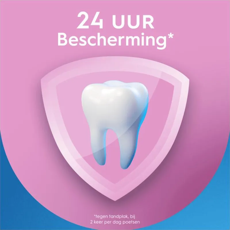 - Beschermt op acht gebieden: gaatjes, tandplak, tandsteen, adem, tandvlees, gevoeligheid, oppervlakkige verkleuringen, glazuur