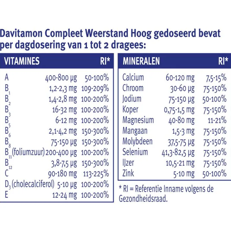 Davitamon Compleet Weerstand Forte is speciaal ontwikkeld voor volwassenen en bevat een extra hoge dosering van belangrijke vitamines en mineralen en is daarom: