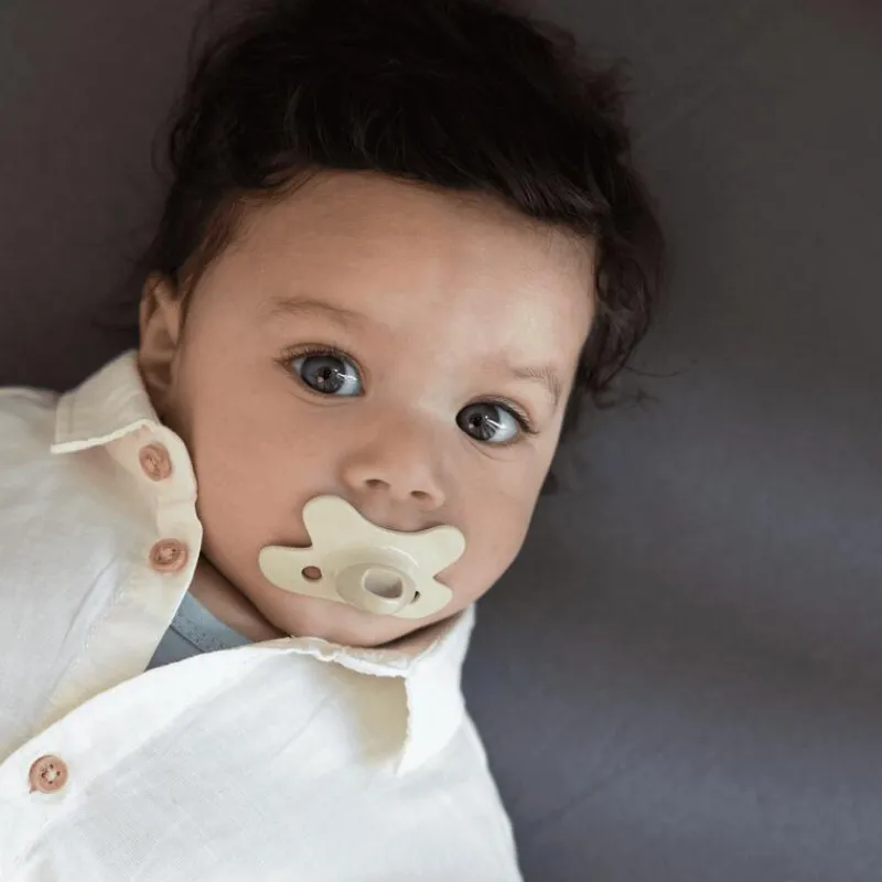 Het lichte, vlindervormige schildje met ventilatiegaatjes zorgt voor een goede luchtcirculatie rond de mond en helpt huidirritatie voorkomen. Dankzij de symmetrische vorm ligt de speen altijd goed, ongeacht hoe je baby hem in de mond neemt.